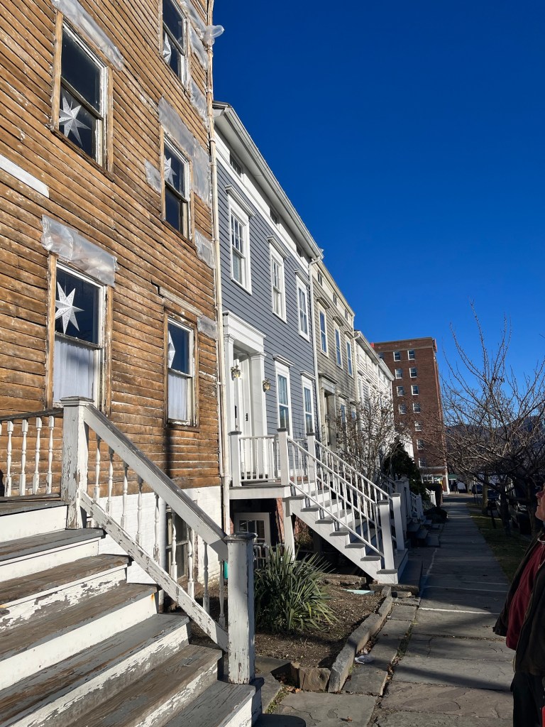 We saw many historic boarded up buildings and also much evidence of restoration. My eves dropping husband overheard four conversations about real estate in the coffee shop where we had lunch. The prices are definitely a deal for folks moving up from the city.
