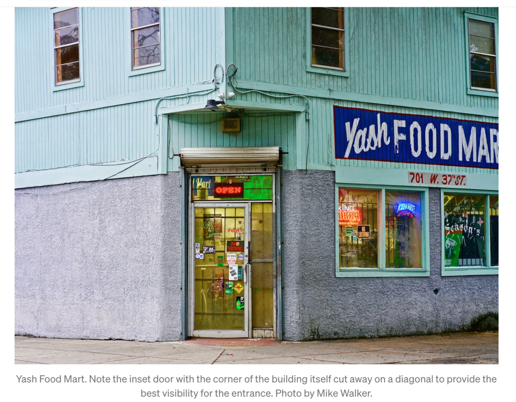 There were corner stores on just about every residential street, usually grocers, with the unique feature of a doorway cut in diagonally. Most are no longer operating; as car ownership increased, it was no longer imperative to have a corner grocer on every block. As efforts increase to become a less car dependent society to address climate change, I wonder if we will see a re-emergence of corner stores. In cities that have good public transportation, they still exist.