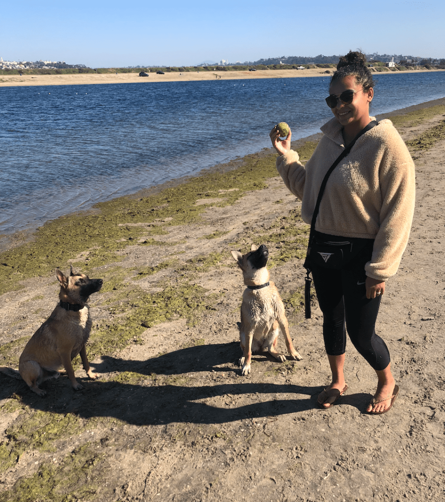 Tessa and her fur babies at Fiesta Island dog park. There are four dog beaches designed specifically for your pooch, some even equiped with doogie foot showers to wash off sandy feet.