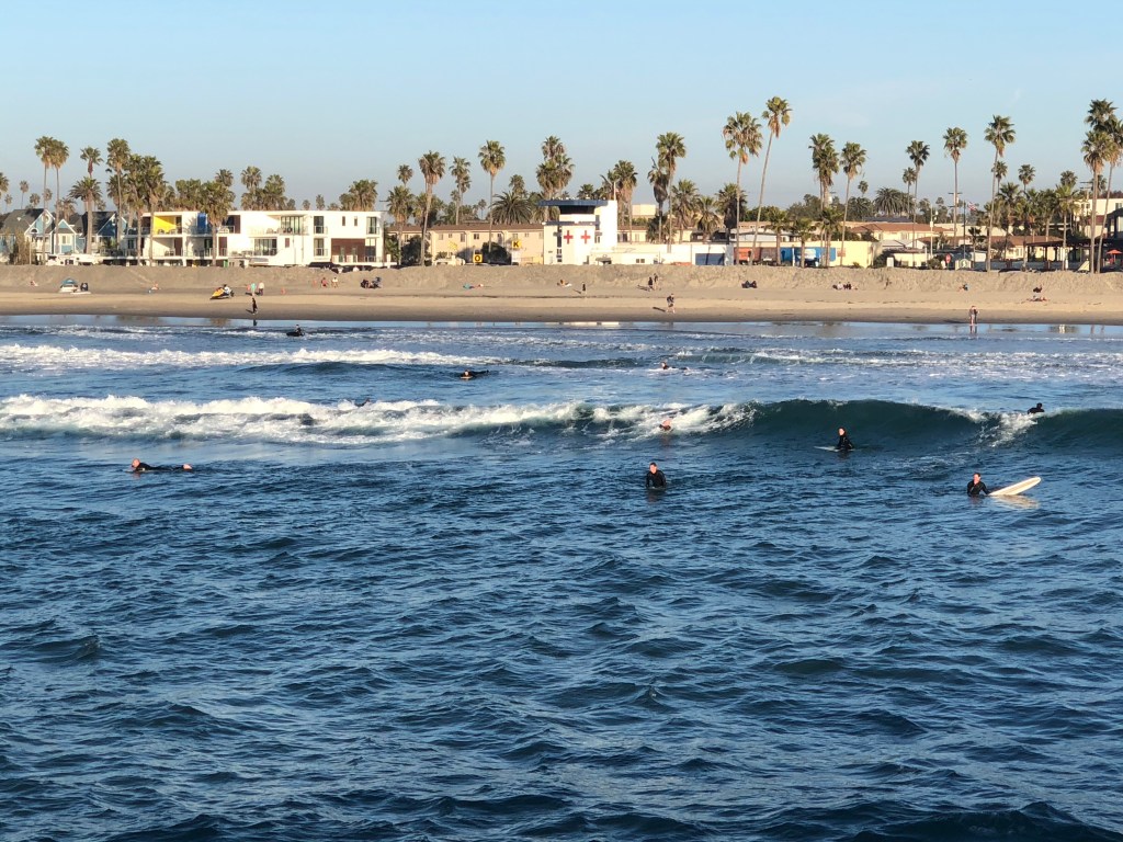 We decided to hang out in the Ocean Beach neighborhood of San Diego this afternoon. It has a decidedly different vibe than La Jolla, where the (white) beautiful people are. Ocean Beach has beautiful people, too, just more of a mix of sizes, colors, religions and incomes of people who live here. People watching is more fun here.