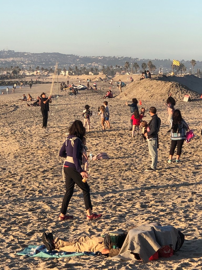On the beach there was a homeless man, a guy blowing huge bubbles, a woman in a hijab and her family, musicians and people of all backgrounds enjoying themselves.