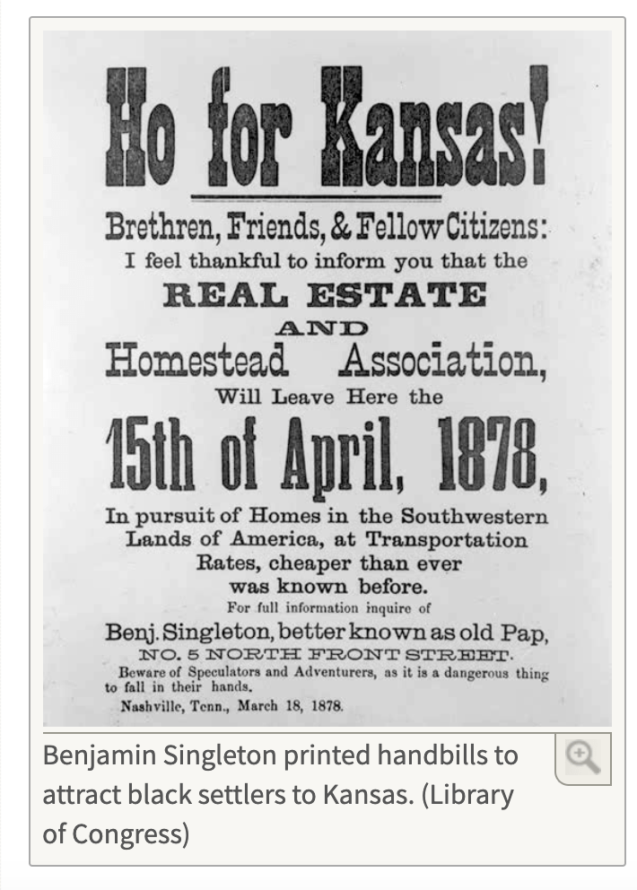 “I am anxious to reach your state … because of the sacredness of her soil washed by the blood of humanitarians for the cause of freedom.” — S.L. Johnson, black Louisianan in a letter to Kansas Governor John St John, 1879