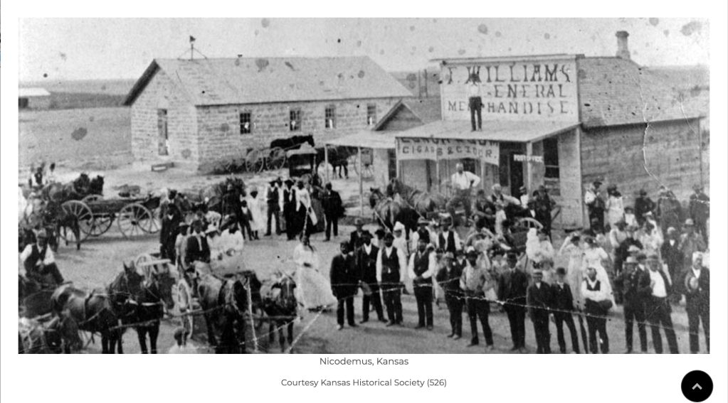 Nicodemus was the first black community west of the Mississippi River and is the only predominantly black community west of the Mississippi that remains a living community today. The first groups to populate the town in 1877 came mostly from the Lexington, Kentucky area. Moving west to Nicodemus was no small feat, as the town was a distance from rail and stagecoach routes. Upon seeing the remote and barren location of Nicodemus, some of the original 380 settlers who left Kentucky to establish the town turned around and went back east.