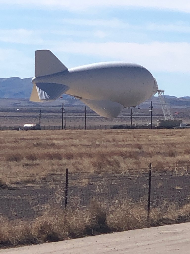 Driving through Texas seems like it will never end. In west Texas near the border, we drove 100 miles through almost uninhabited land to get to El Paso.We have been facinated with what is going on along the Mexican border, given all that is reported in the news. We noticed that in Lajitas and Terlingua, there is little evidence of Customs and Border Patrol. There are no roads across or official border entry points around here and it is easy to just walk across the border. Then we realized that there is only one road and hundreds of miles of arrid, difficult terrain to cross. Border patrol did have a set up 20 miles up the road, which is probably pretty effective because it would be difficult to survive the walk. There must be talk of building “the wall” here because we passed this sign: “No wall. Rednecks for Beto and Will Hurd”We also passed this and discovered that the Tethered Areostat Radar System (TARS) are blimps that watch over the southern border for low flying drug smuggling airplanes. Customs authorities estimated that by the early 1980s, as many as 8,500 illegal flights per year were transporting narcotics directly from the Caribbean, Central or South America into the U.S . The number of unidentified aircraft flying over the border has dwindled to less than 10 per year. Each blimp can detect planes for 200 miles.