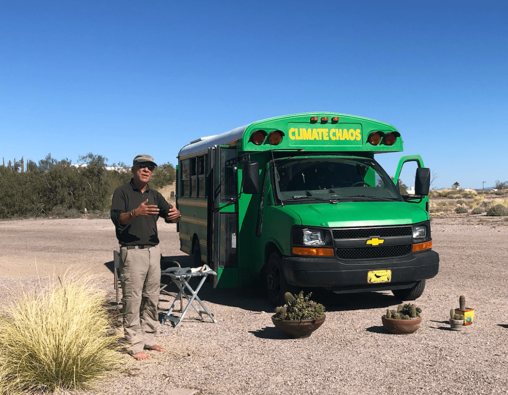Defunct open pit copper mine just outside of Ajo. In Ajo we met, Bill Wolfe, an environmental activist who was fired as a whistle blower for the New Jersey Dept. of Environmental Protection. He worked for the Sierra Club, and was a founding member of Public Employees for Environmental Responsibility (PEER) and nows lives in his eco bus, writing a blog. He has a lot of interesting things to say about the current election and environmental matters.