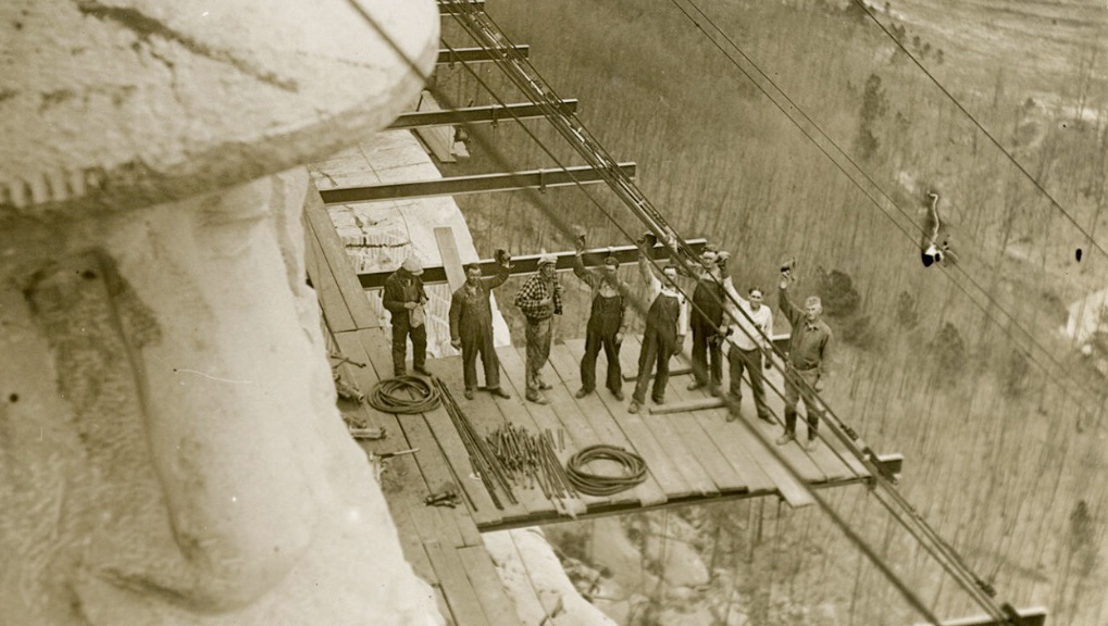 “The nearly 60-year effort it took to create this monument, from its first fundraising campaign in 1915 to finishing touches in 1972, makes quite the compelling story. Historical photos show stonecutters dangling from cables and perched on swings halfway down the mountain’s 825-foot face. Carving these figures into the mountainside took courage, strength and skill. But there’s an odious side to the story.
