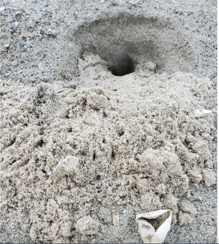 A green sea turtle in Florida covers her newly laid eggs with sand. Some researchers found increases in successful nesting rates during the pandemic when beaches were closed. PHOTOGRAPH BY REBECCA SMITH, UNIVERSITY OF CENTRAL FLORIDA, PERMITTED RESEARCH UNDER MTP-186Hatchlings emerge from their nests in impossibly small holesWe found these turtles shells in old nests along the dunes where turtles have already hatched.