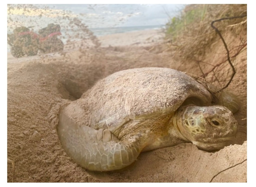 Hatchlings tend to emerge from their nests in the dark and use the moonlight’s reflection on the crashing waves to guide their return. Too much light pollution from development can confuse hatchlings and cause them to walk away from the ocean.