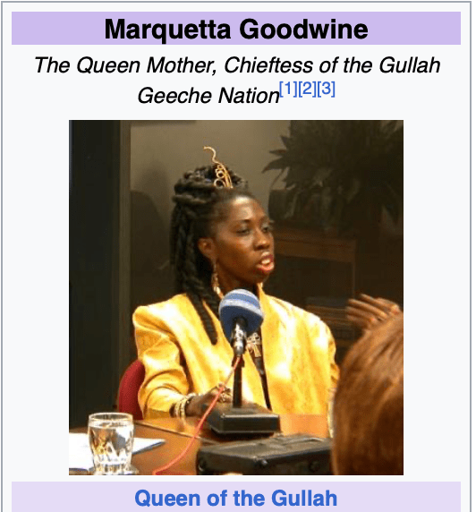 Queen Quet is a published author, computer scientist, lecturer, mathematician, historian, columnist, preservationist, environmental justice advocate, environmentalist, film consultant, and “The Art-ivist.” (quennquet.com)