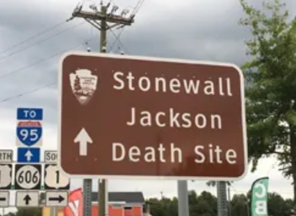 We saw this sign along I95 on the way to Richmond, VA., “Stonewall Jackson Death Site”. Seems like peculiar wording and got us wondering how Stonewall Jackson did die. Did he die in battle during the Civil War? Apparently, he was accidentally fired upon by his own troops, the 18th North Carolina Infantry Regiment, while reconnoitering with members of his staff. He lost his left arm to amputation. Weakened by his wounds, he died of pneumonia eight days later. Jackson’s death proved a severe setback for the Confederacy