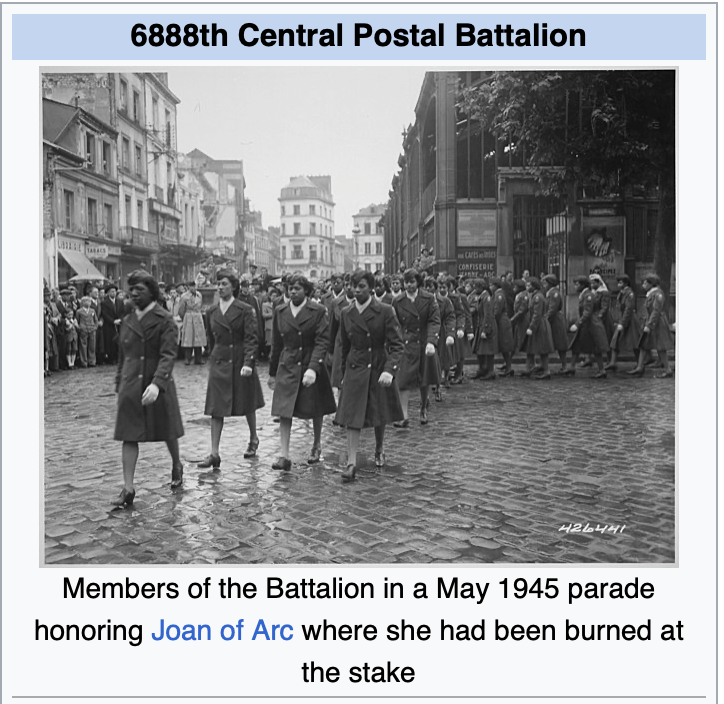 Adams enlisted in the U.S. Army’s Women’s Army Auxiliary Corps (WAAC) in July 1942. She was the first African-American woman to be an officer in the WAAC and was the commanding officer of the 6888th Central Postal Directory Battalion, which was made up of African-American women serving overseas during World War II.. The 6888 was stationed first in Edgbaston, a suburb of Birmingham, England. Three months later they were moved to Rouen, France and then to Paris. They were responsible for the delivery of millions of pieces of mail to soldiers during World War II. Wikipedia
