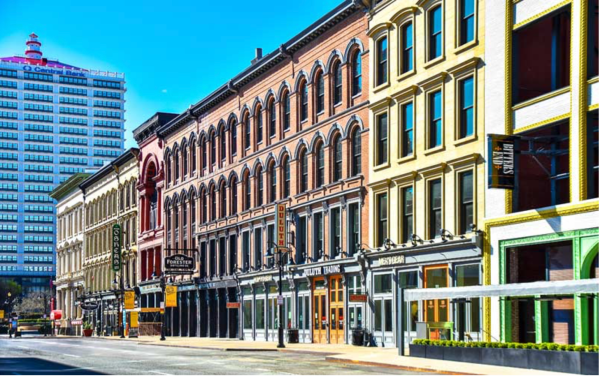 Doc Crows is on Whiskey Row, that was home to some of Louisville’s most booming businesses. Revivalist and Chicago School-style buildings, many with cast-iron storefronts, were built between 1852 and 1905 on Main Street, which was the major trade center for whiskey dealers, blending houses, barrel warehouses and bottling plants. It is now a popular destination for whiskey named bars, restaurantsand shops.