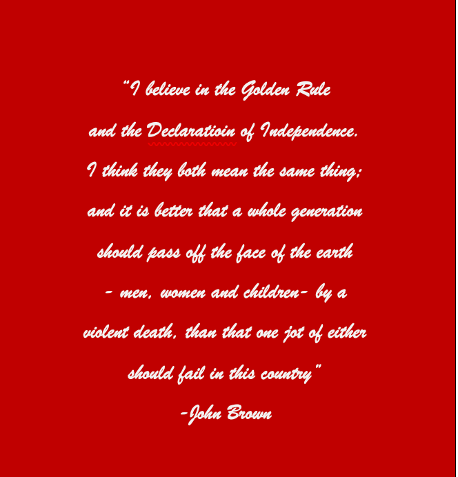 I have been interested in John Brown for a long time, especially after reading the book, Cloudsplitter, by Russel Means. It is written as historical fiction, from the perspective of his son and based on historical documents. I feel a bit guilty admiring John Brown so much since violence goes against my Quaker beliefs. Nonetheless, his steadfast dedication to the abolition cause, in spite of major hardships in his life is an inspiration.