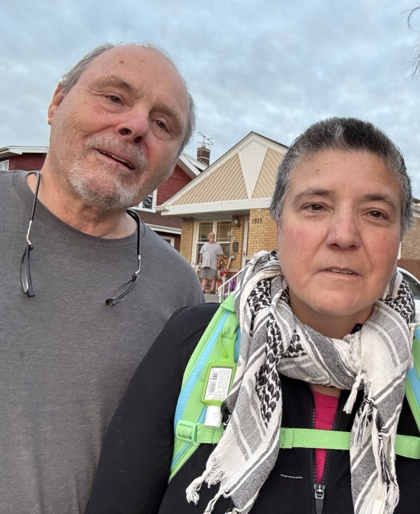 My justice hero for the day is Caren, who has been going to the Broadview ICE Detention protests every day in spite of being shot with pepper spray bullets. She is a nurse for the VA who works around the corner and decided she needed to be there.