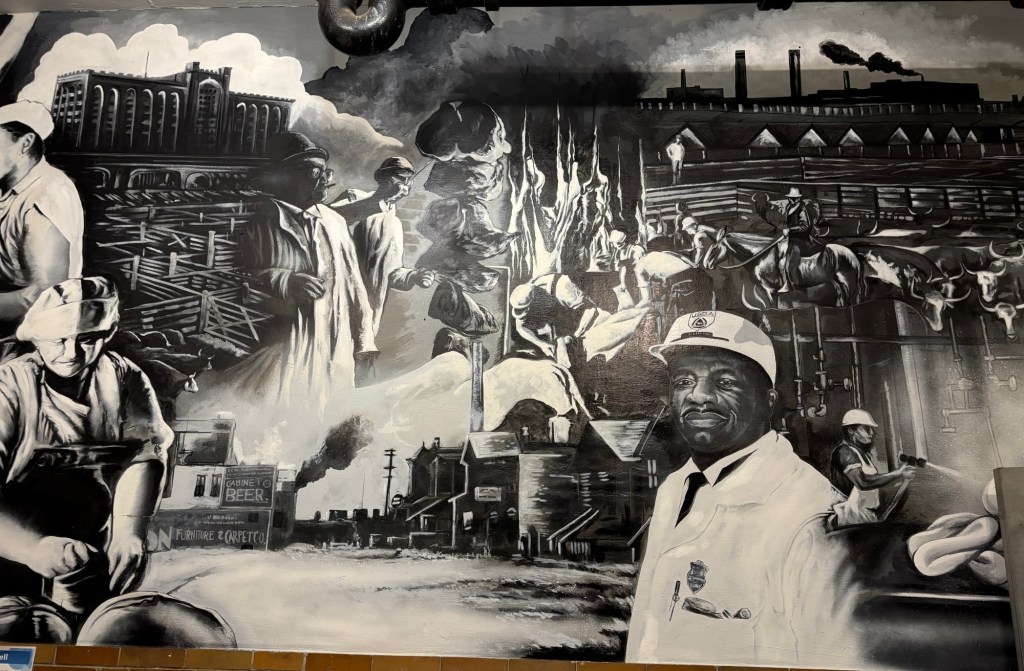 Yesterday we visited the Back of the Yards neighborhood in Southwest Chicago which, until the 1950s, was the largest livestock yards and meatpacking center in the country. The invention of the refrigerated boxcar in 1880, along with the concentration of railroads in the area, led to the industrialization of food processing and the rapid expansion of the Union Stock Yard and the adjacent packing plants.