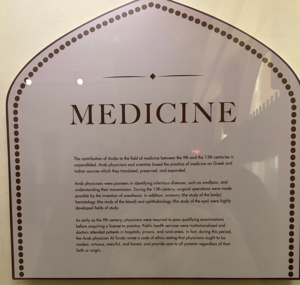 We learned about the cradle of civilization and ancient Arab contributions to art, music, mathematics, astronomy, medicine and architecture.