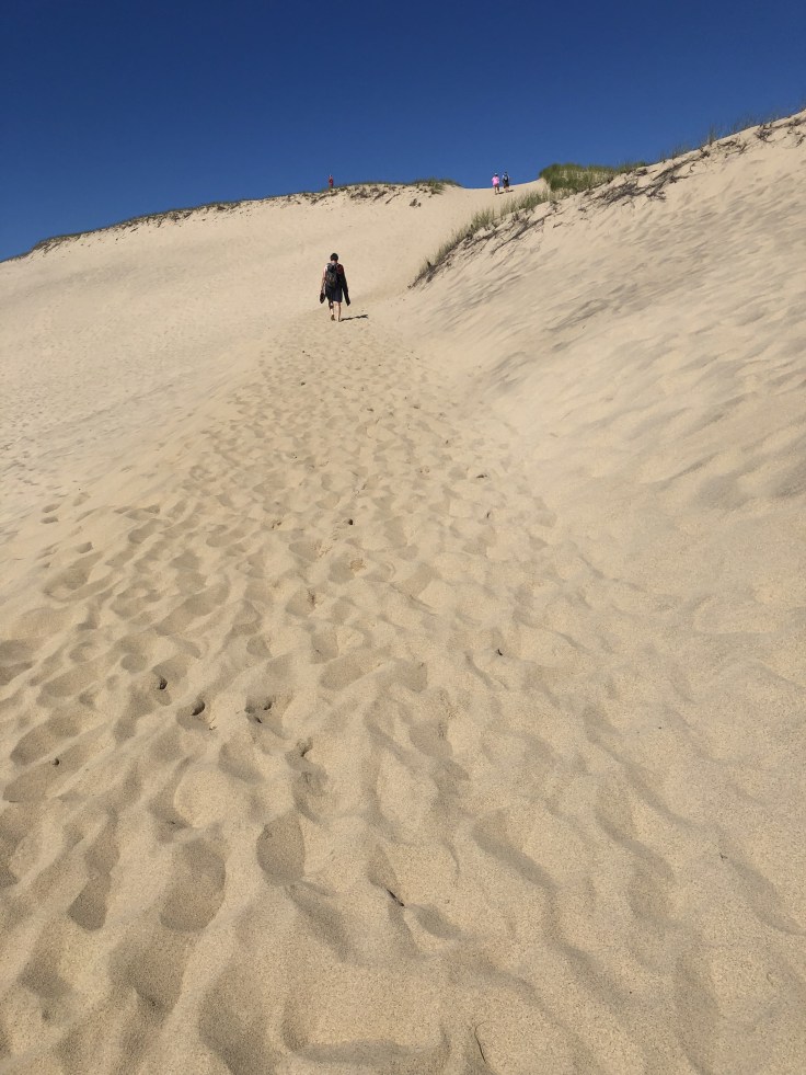 Those who a familiar with Provincetown may have wondered why all the cars are parked along Route 6 right before you get to town. We have wondered this for years and decided to find out. There is an unmarked path that is through the dunes- officially the Peaked Hills Bars Historic District. In addition to very large sand dunes, the area contains dune shacks that are part of the Provincetown’s rich history.