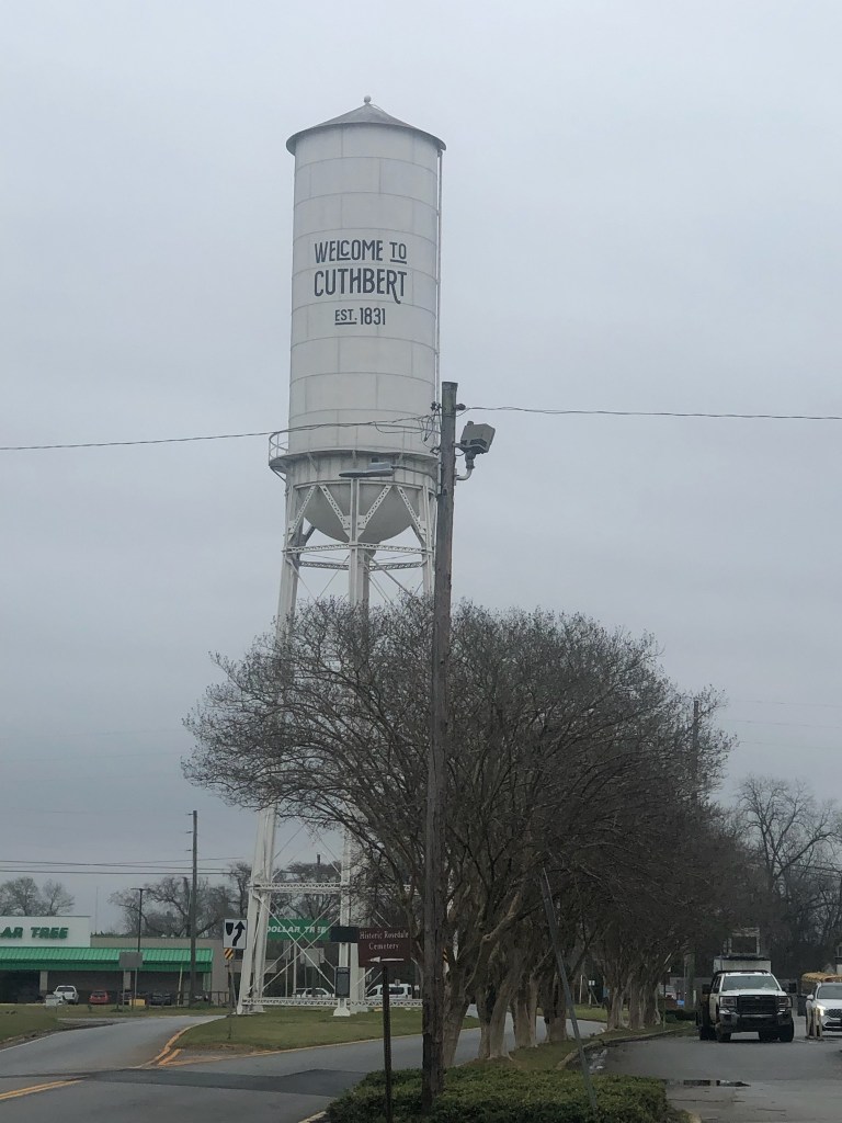 The Cuthbert Water Tower, erected in 1895, has the distinction of being the only water tower in the middle of a federal highway. It is located in the middle of US Highway 82 (Jefferson Davis Highway) and defines the skyline of Cuthbert. For many years, people believed those who drank water from the tower would either stay or return to Cuthbert.