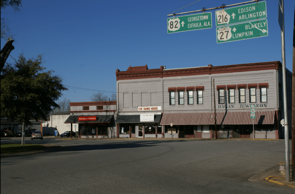 We enjoyed driving less traveled roads through Georgia today. We stopped for gas in Cuthbert, Georgia (population 3,143), on the Jefferson Davis Highway. It is 100 miles from the gulf coast, 100 miles from the closest city (Montgomery, Al) and not near, it seems, anything at all. The City of Cuthbert, incorporated in 1831, is the county seat of Randolph County, which has a total population of 6,287 people. Most of the buildings, built on Cuthbert town square around 1890, are still there. One surprising thing about Cuthbert is that there are no obvious chain restaurants or motels, except for the ever present Dollar General. Is there a rural town in America that does not have a Dollar General?